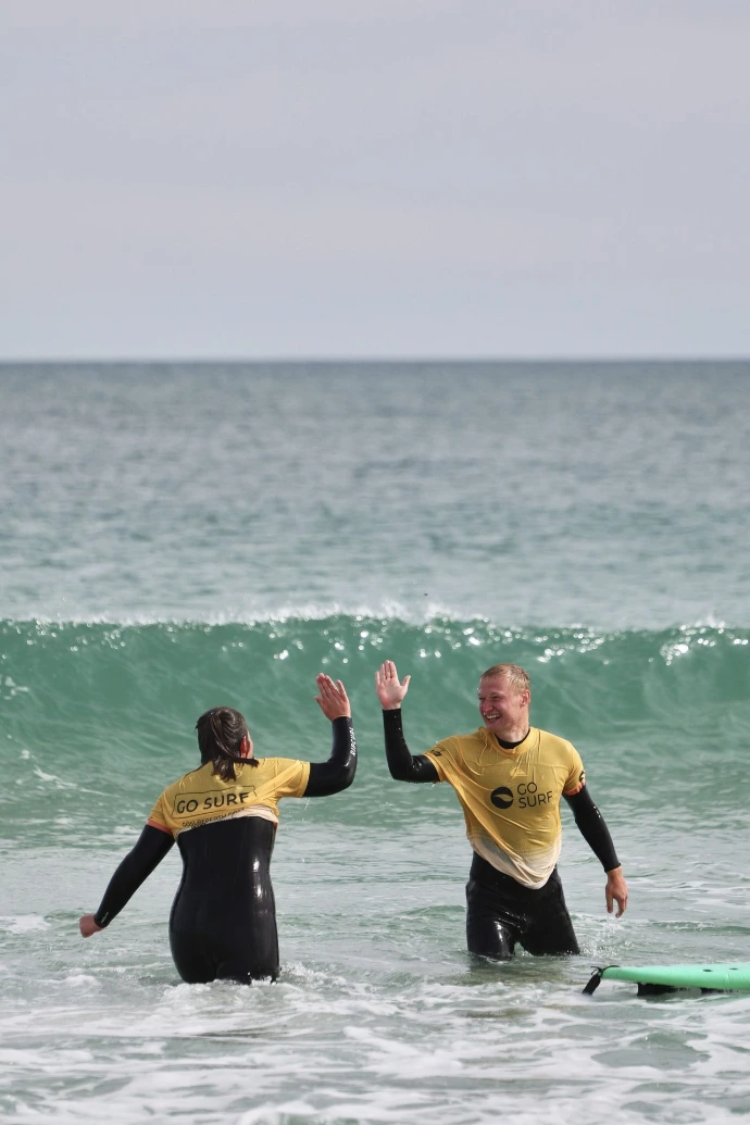 Cours de surf adaptés à tous les niveaux, encadrés par des coachs locaux certifiés.