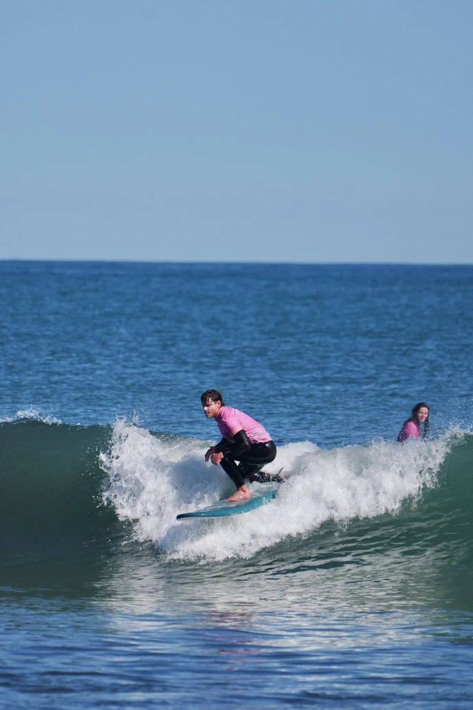 Matin : grande session de surf, mise en pratique de tout ce qui a été appris sur la semaine, conseils personnalisés pour continuer à progresser après le séjour.